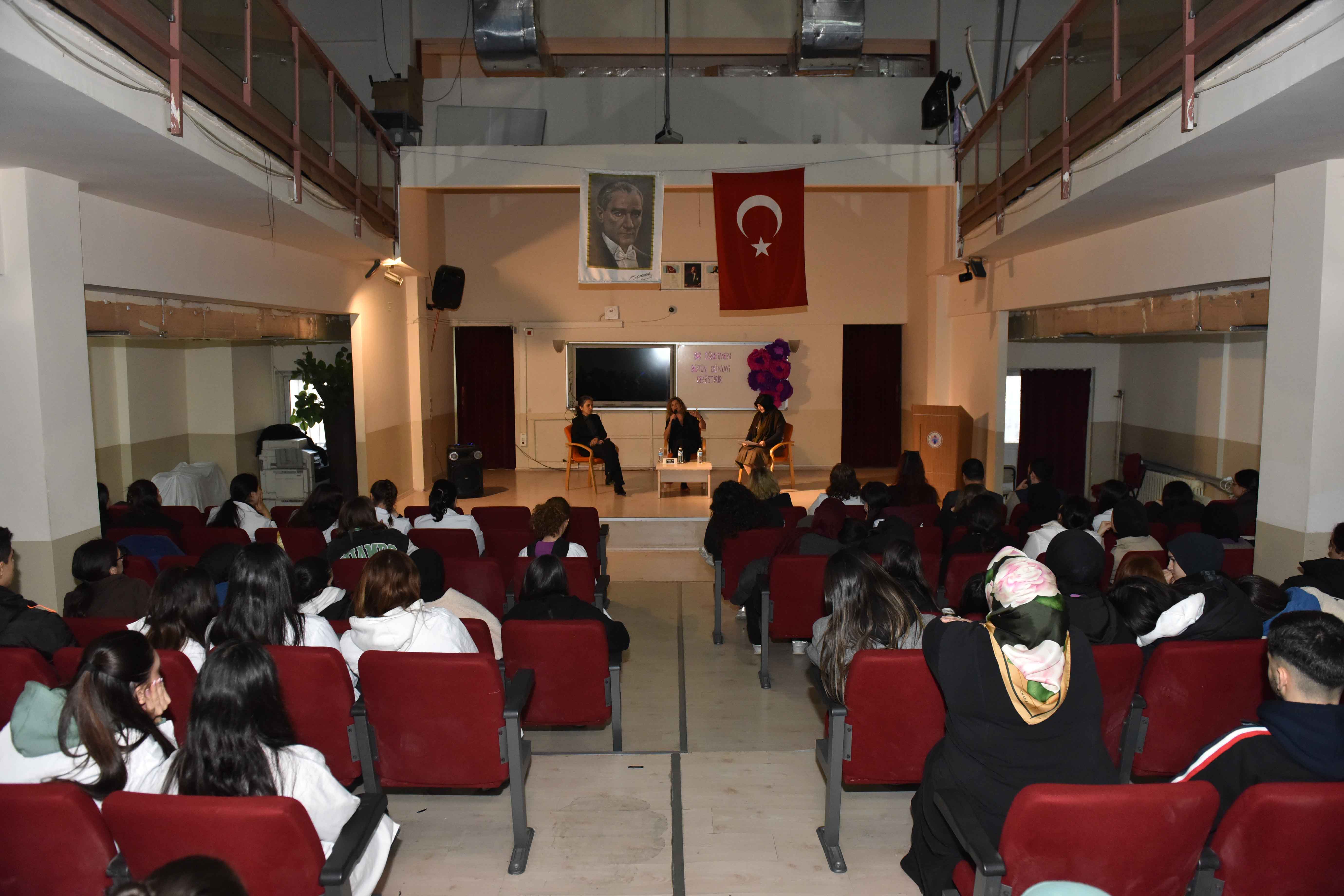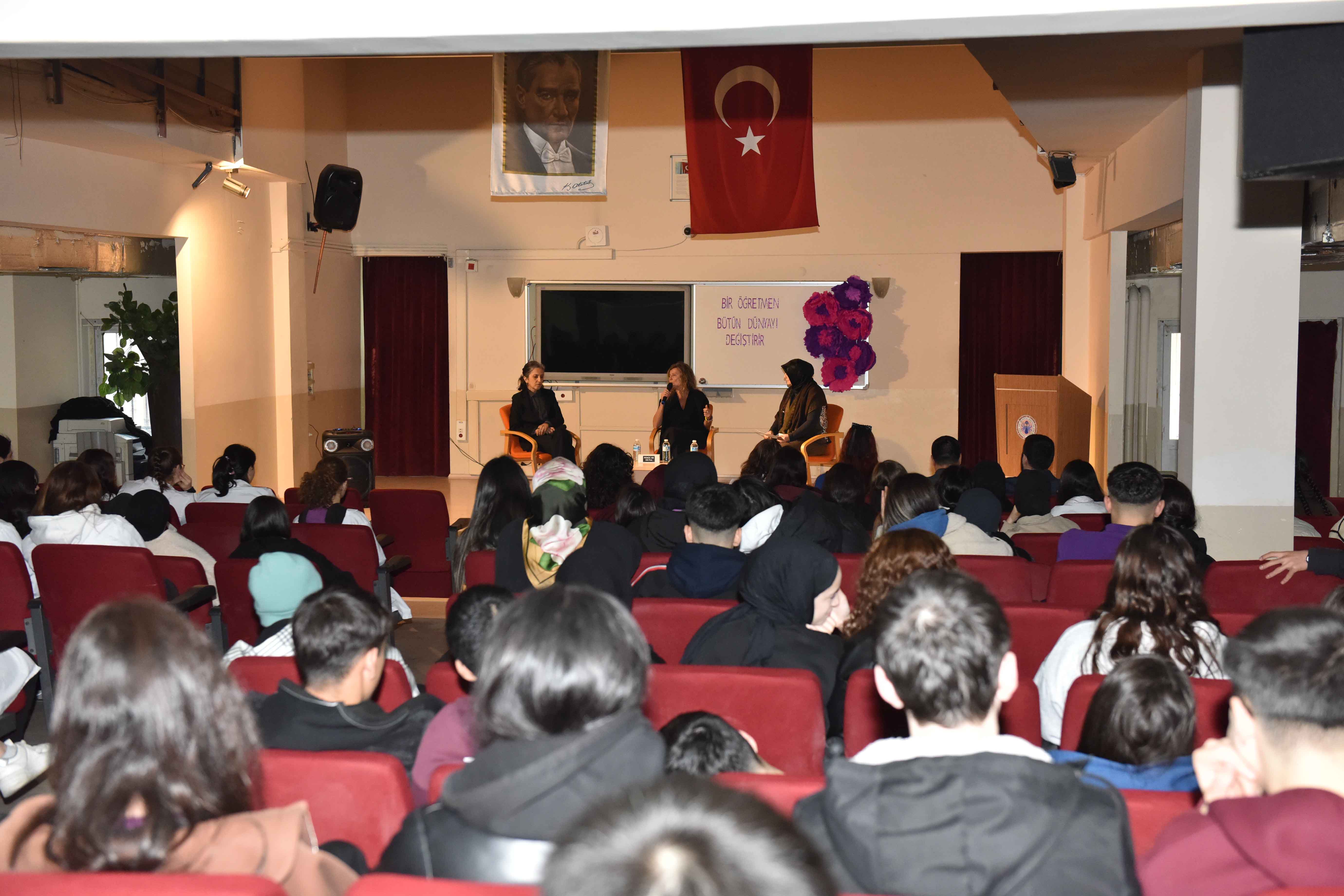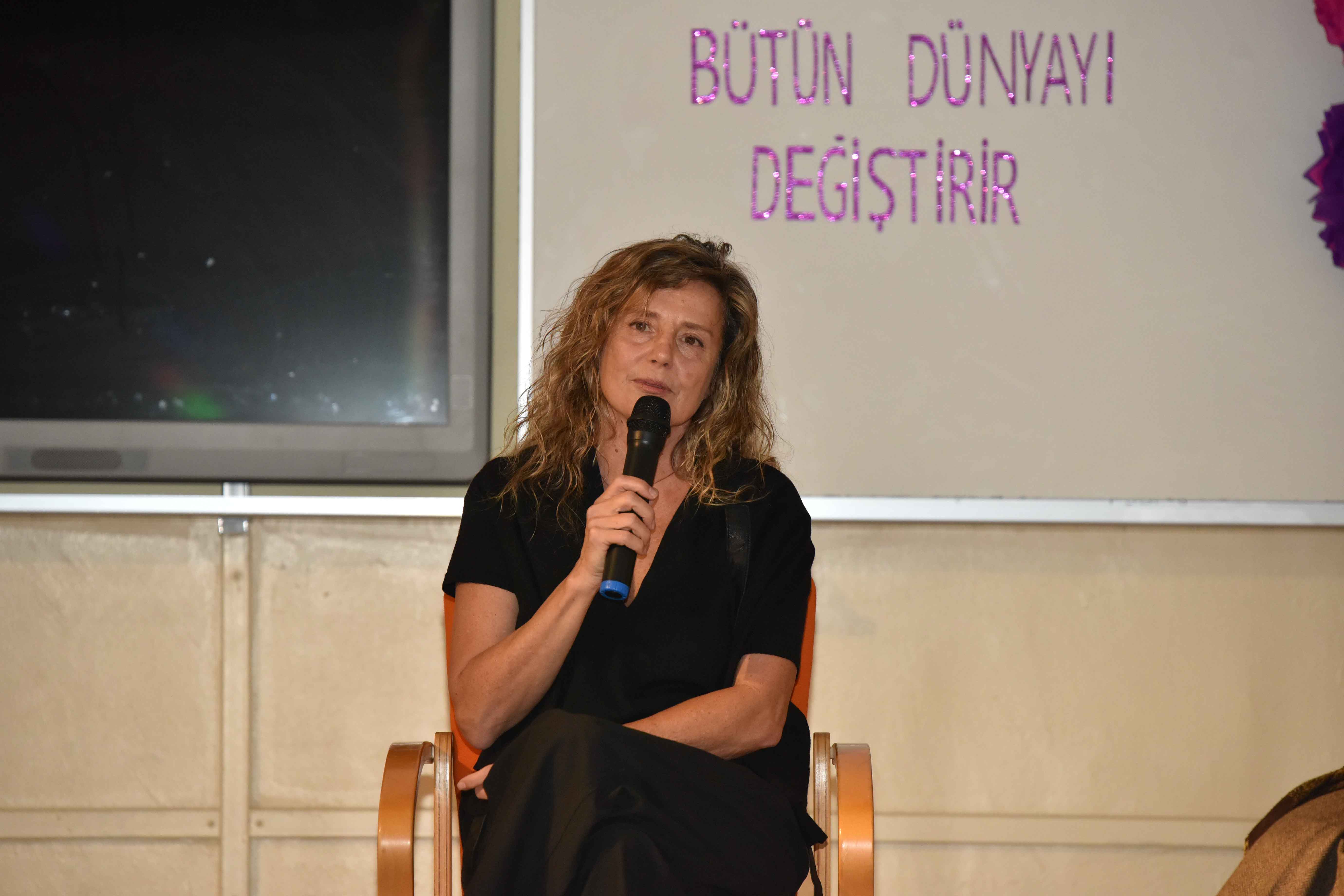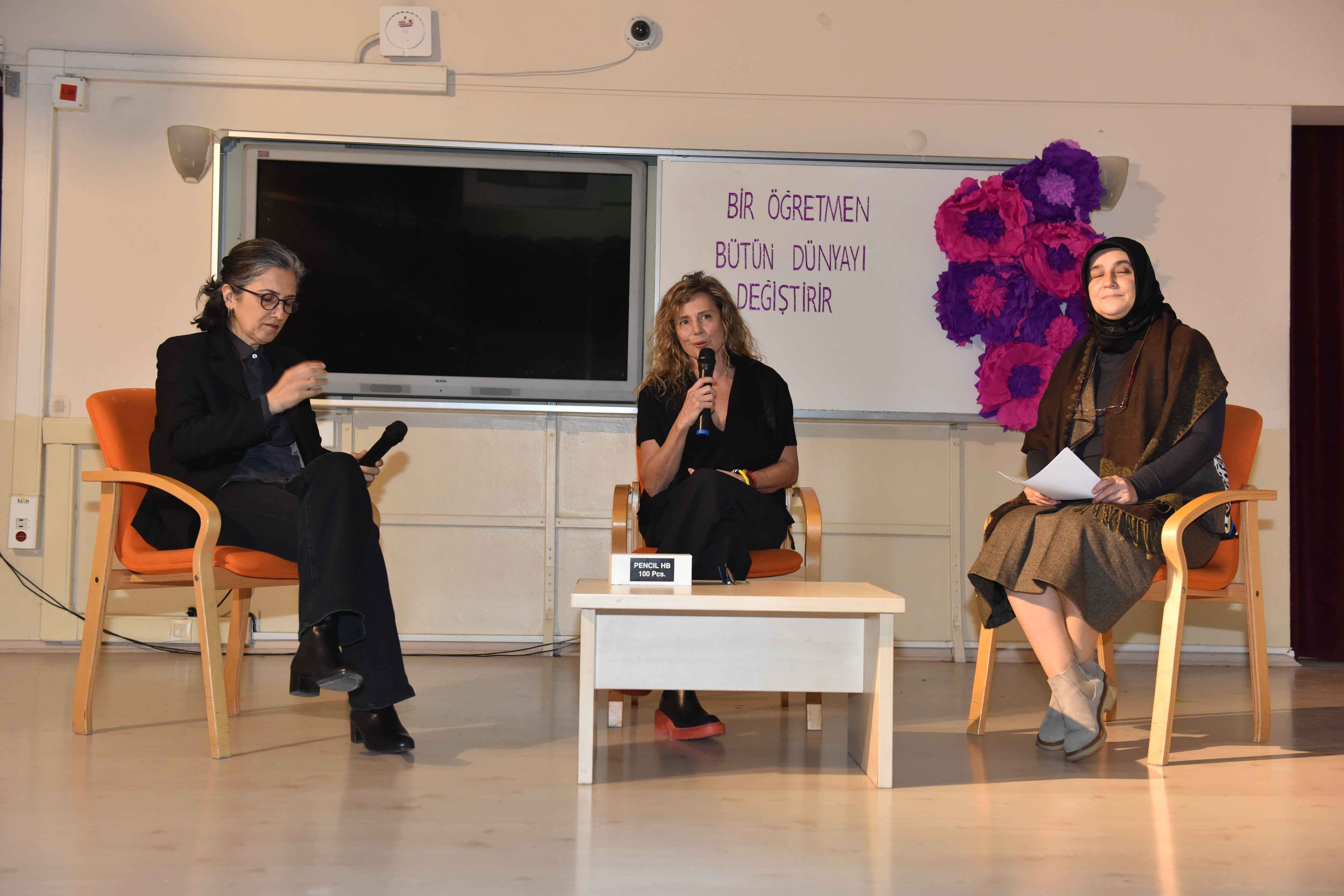 İHKİB Protokol Okullarında Vizyon Konuşmaları Devam Ediyor." İHKİB Akademi sektör Öğrenci buluşmaları kapsamında bu defa İHKİB Kağıthane MTAL ‘de, ülkemizin önemli tasarımcılarından Belma Özdemir (MTD Başkanı) ve Hatice Gökçe öğrencilerle bir araya gelerek Hazır Giyim ve Tekstil sektörü ile tasarım süreçlerine ilişkin tecrübelerini paylaştı.