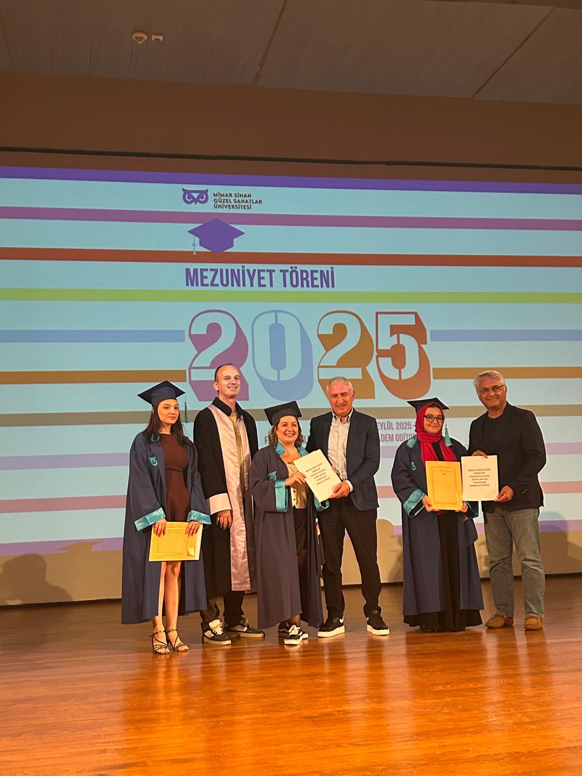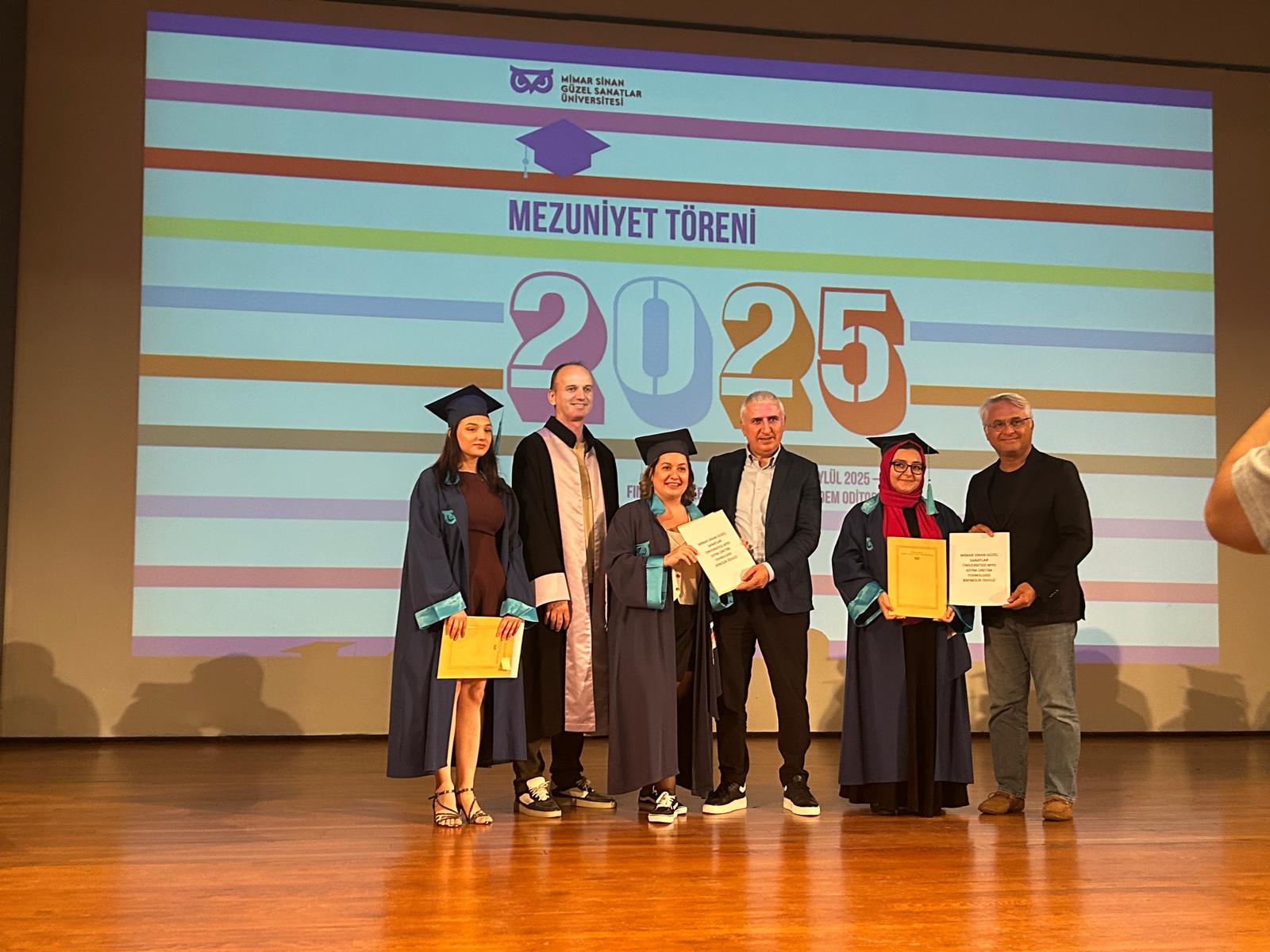 Mimar Sinan Güzel Sanatlar Üniversitesi – Giyim Üretim Teknolojisi Programı 2024-2025 dönemi mezunlarımızın ödül töreni 18.09.2025 tarihinde Mimar Sinan Güzel Sanatlar Üniversitesi'nin ev sahipliğinde gerçekleştirilmiştir. Dereceye giren başarılı öğrencilerimize ödüllerini, İHKİB Yönetim Kurulu Üyesi ve Eğitim Komitesi Başkanı Sayın İlker KARATAŞ ve İHKİB Eğitim Vakfı Genel Sekreteri Süleyman Çakıroğlu takdim etti.