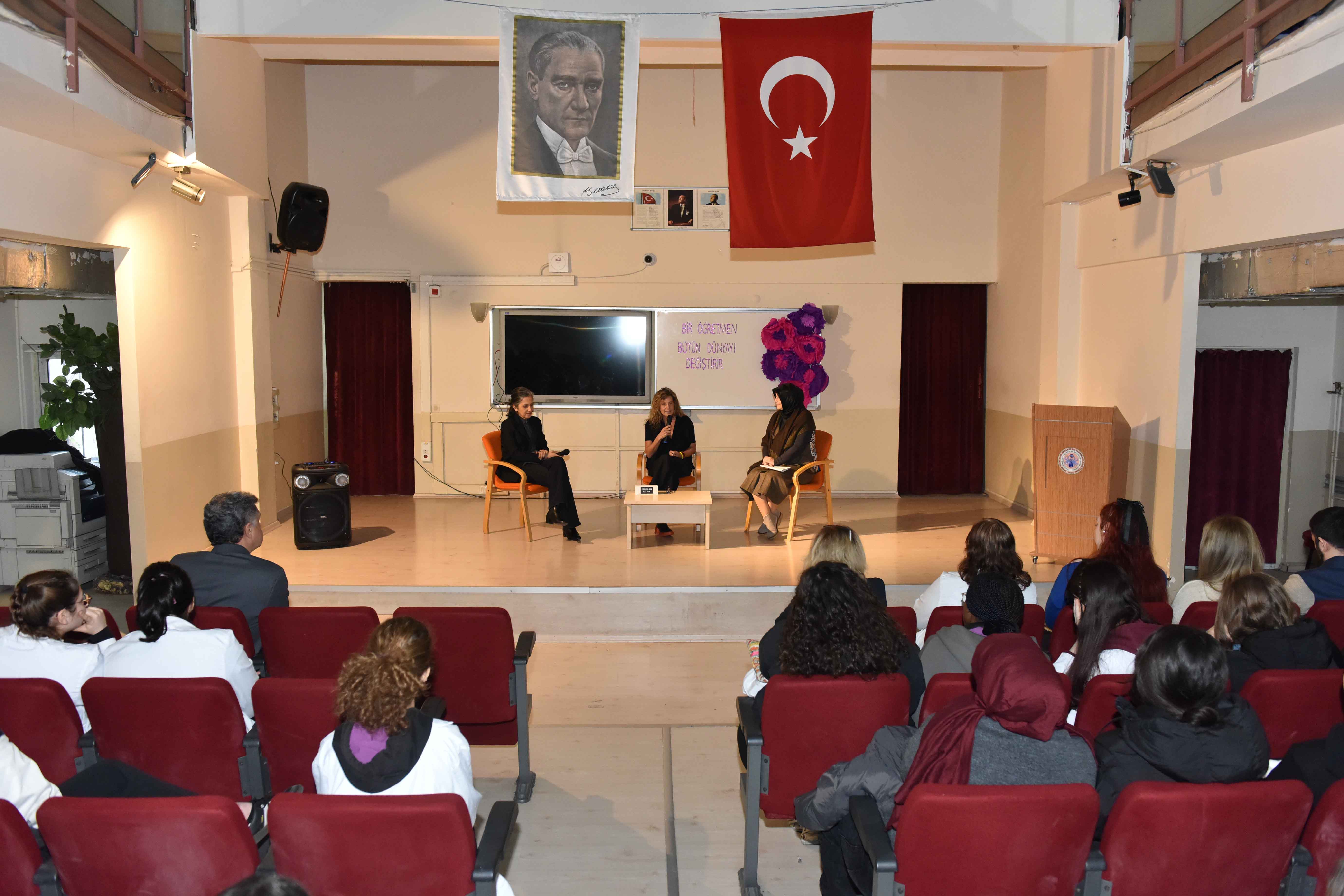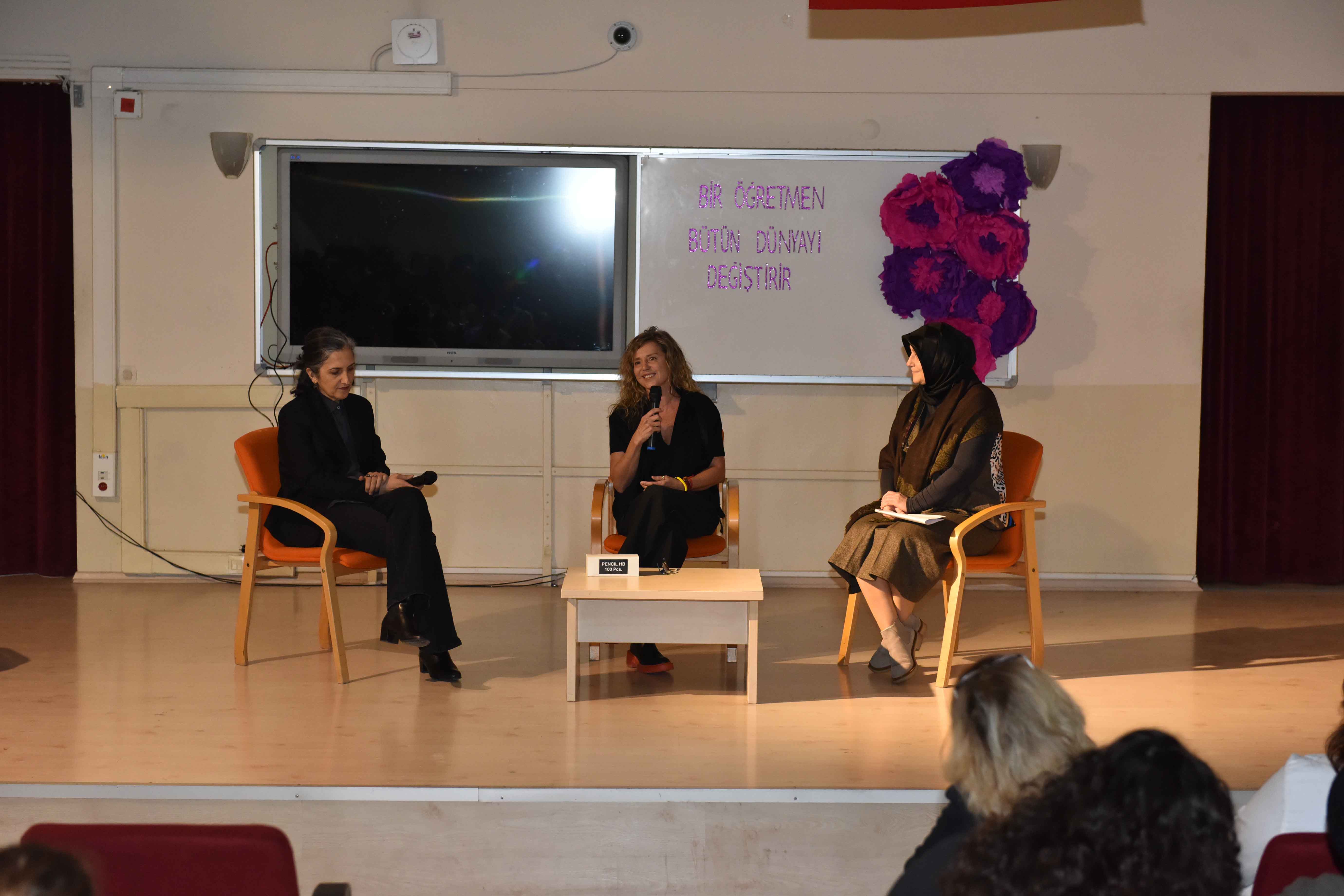 İHKİB Protokol Okullarında Vizyon Konuşmaları Devam Ediyor." İHKİB Akademi sektör Öğrenci buluşmaları kapsamında bu defa İHKİB Kağıthane MTAL ‘de, ülkemizin önemli tasarımcılarından Belma Özdemir (MTD Başkanı) ve Hatice Gökçe öğrencilerle bir araya gelerek Hazır Giyim ve Tekstil sektörü ile tasarım süreçlerine ilişkin tecrübelerini paylaştı.